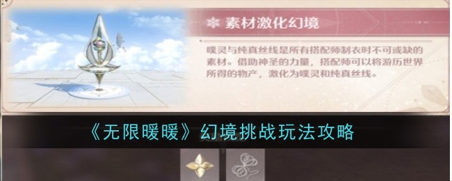 《无限暖暖》共有素材激化、奇想滋养、祝福闪光等四种幻境,玩家只需达到指定条件就能激活,由于很多小伙伴不知道幻境挑战怎么玩,下面小编将为大家详细介绍一下,感兴趣的赶紧来看看吧。