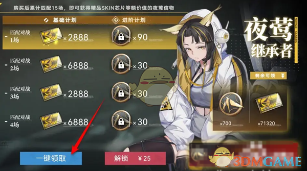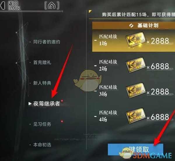 2、接着在活动页面,点击下方的夜莺继承者,点击一键领取;