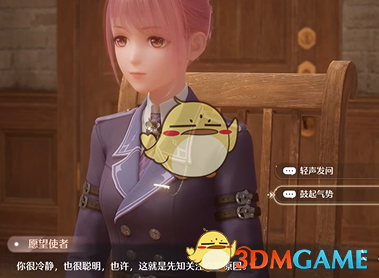 3、和愿望使者进行对话,点击鼓起气势。