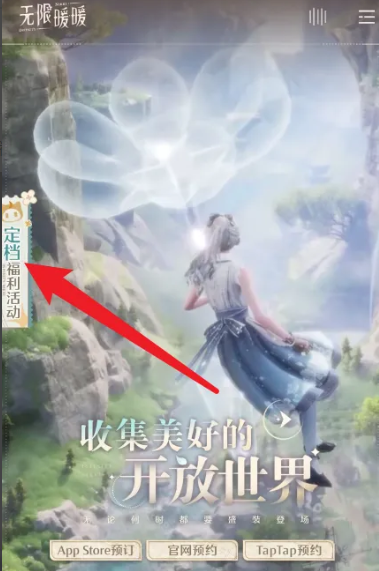 1、打开无限暖暖官网,在页面左侧点击定档福利活动