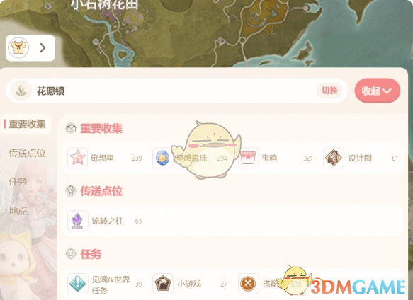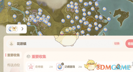 1、玩家可以在此处选择一个需要收集的物品,例如奇想星、灵感露珠和宝箱。