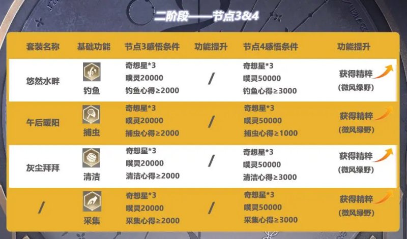 除了奇想星和噗灵外,能力升级还需要心得。心得可以通过采集、捕虫等行为少量获得,但主要来源是体力兑换。在兑换心得时,玩家应避免贪多嚼不烂,只需达到阶段所需的点数即可。