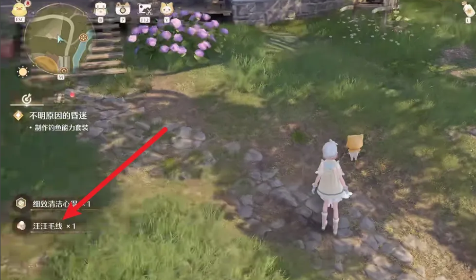 3、靠近狗狗进行清理,即可获得汪汪毛线。