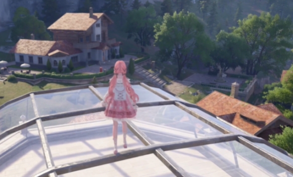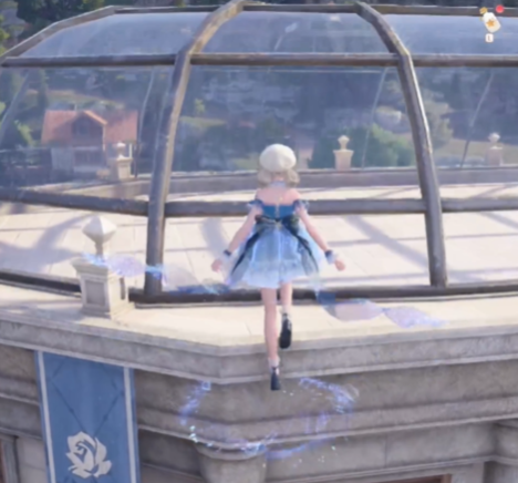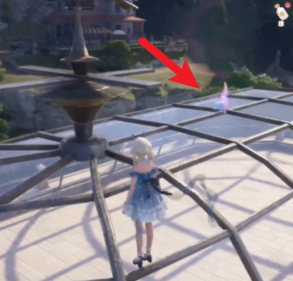 拿到之后视角稍右,就能看到下一颗奇想星,我们直接跳下去到屋子附近。