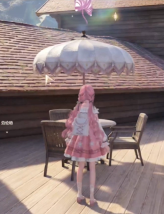 拿到之后,我们向下跳,朝着北边看,就能看到伞上有一颗圆形奇想星。
