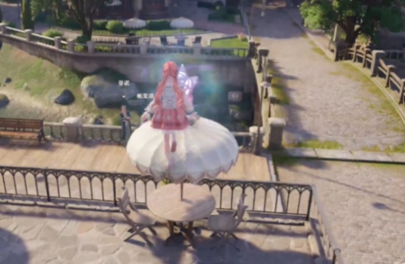 一直跳到蓝色房顶上面,然后视角向东南方向转,就能看到一个气球。