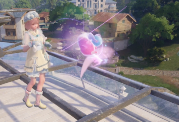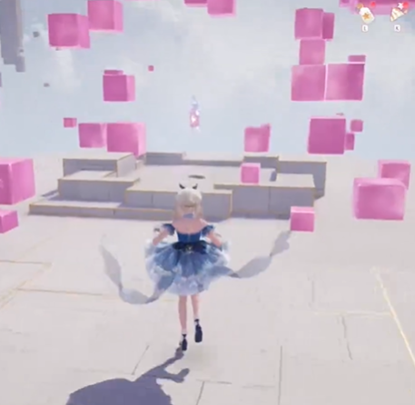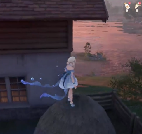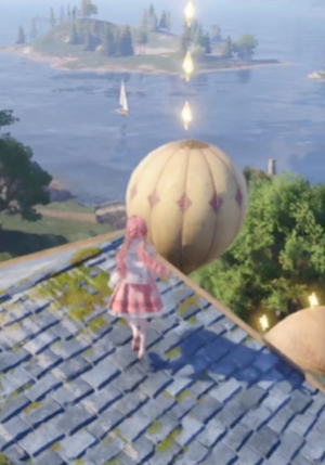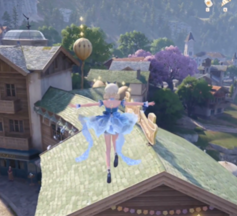一直跳到蓝色房顶上面,然后视角向东南方向转,就能看到一个气球。