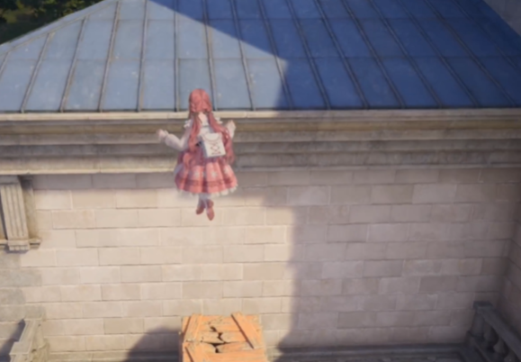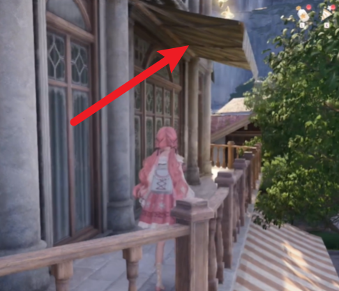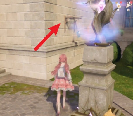 我们先传送到搭配师协会的传送点,然后回头就能看到墙上有个架子,我们需要长按跳键上架子。
