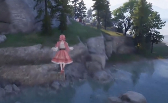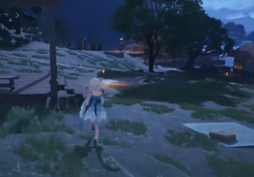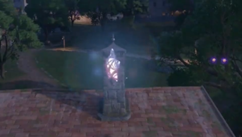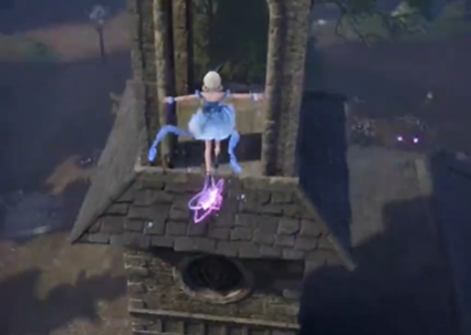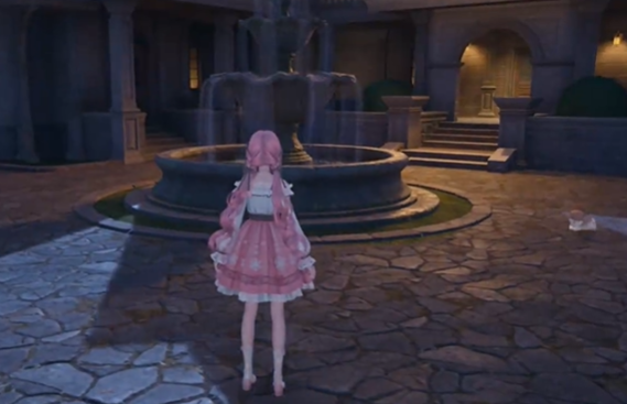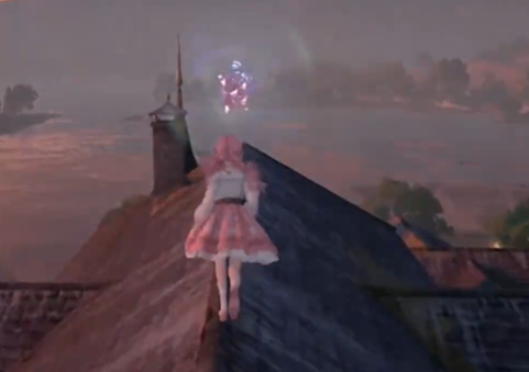然后我们再回到镇长宅邸前的传送点,跳到传送点前的喷泉上。