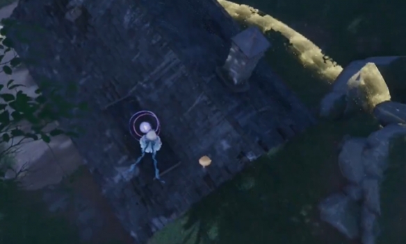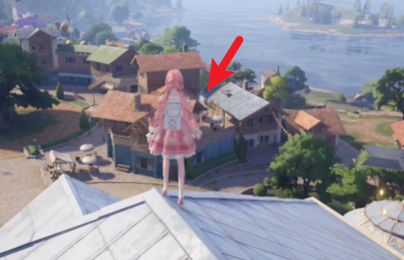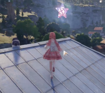 拿到之后视角稍右,就能看到下一颗奇想星,我们直接跳下去到屋子附近。