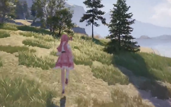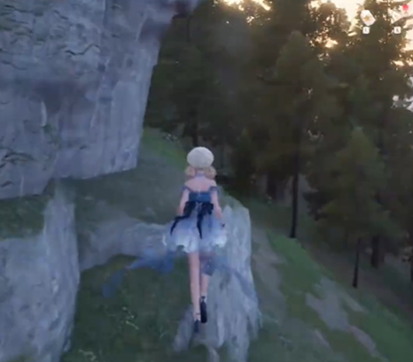 视角向东北方向转,往山上走。