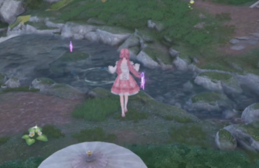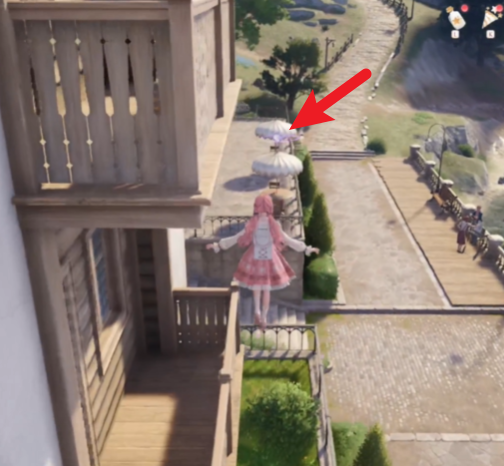 拿到之后,我们向下跳,朝着北边看,就能看到伞上有一颗圆形奇想星。