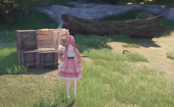 可以看到草丛后有一个箱子。