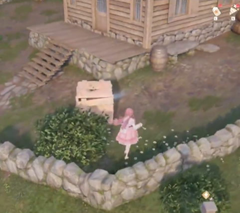 走到这个木屋这边,朝右边绕,绕到门口能够看到箱子,互动将其推开。