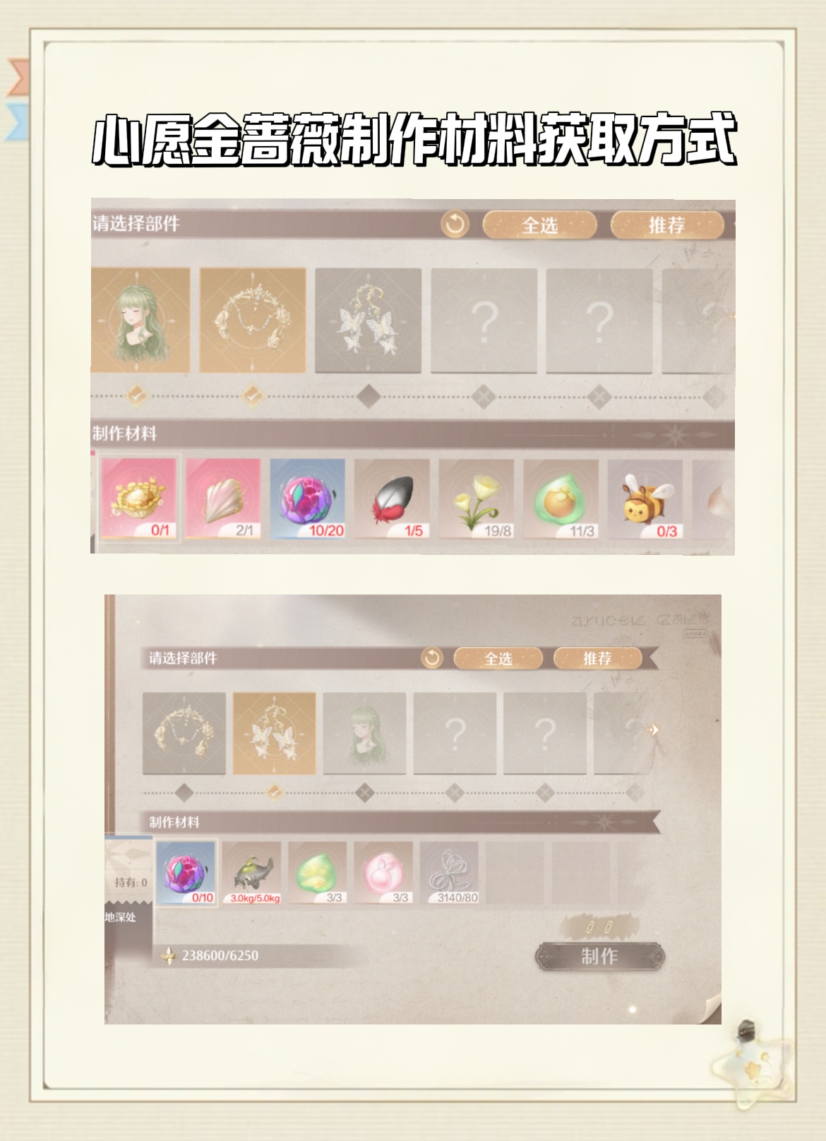 《无限暖暖》心愿金蔷薇制作材料获取方式