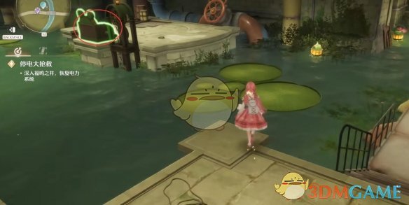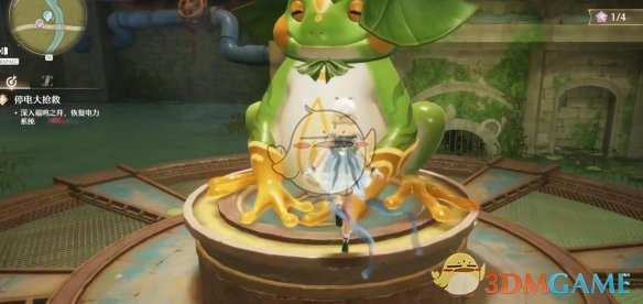 4、和青蛙对话之后,青蛙举起荷叶帮助我们跳上去触发后续的副本玩法;