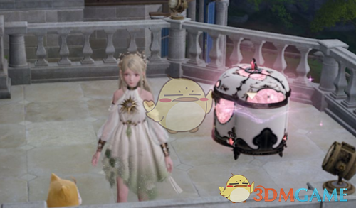 4、在屋顶移动视角向下即可看到搭配师协会入口处上方天台有一个宝箱,靠近后点击开启即可获得季春旗袍设计图。