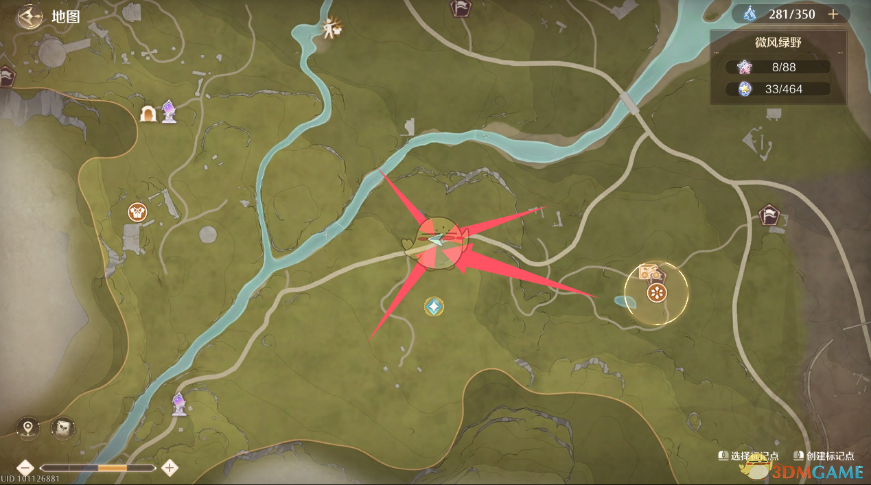 二、解锁方式:打开地图先传送到最近流转之柱传,随后朝箭头点位走。