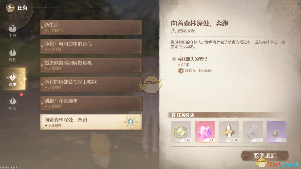 一、任务奖励:400奇想探索经验、30钻石10.0k噗灵、30纯真丝线、原野微光-图纸