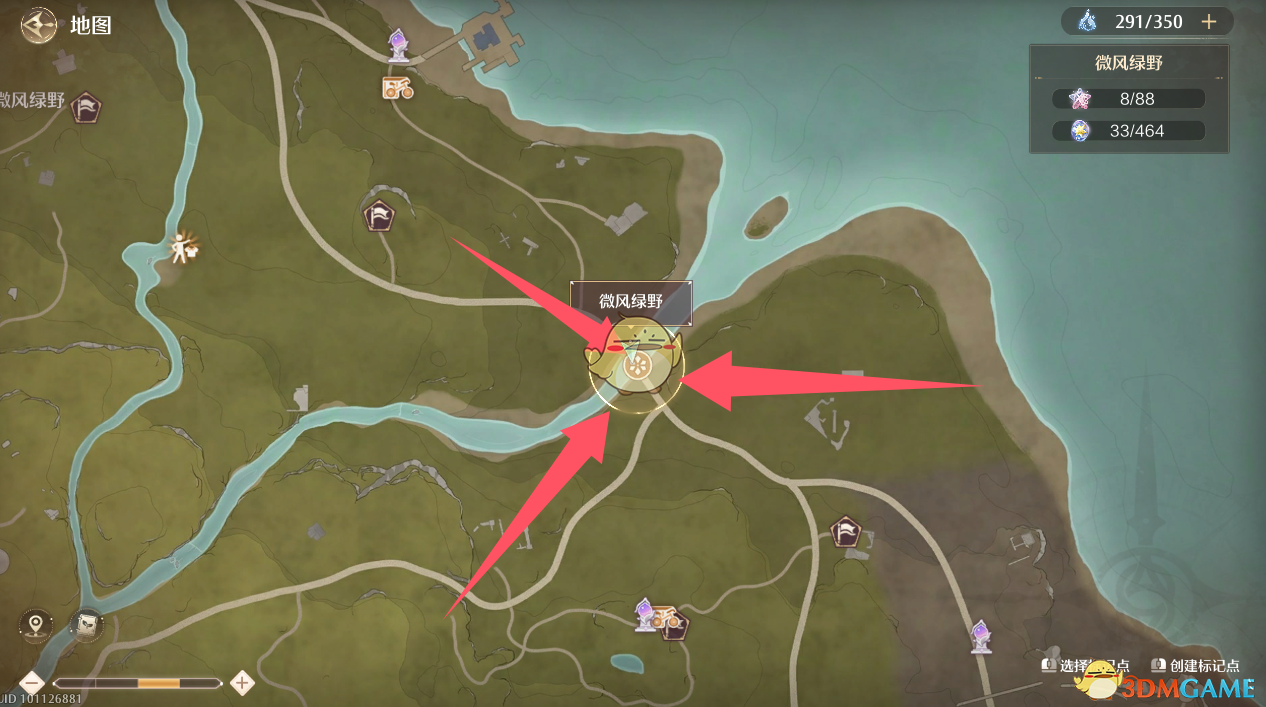 解锁方式:打开地图先使用使用流转之柱传送到最近的点位,随后朝箭头点位走