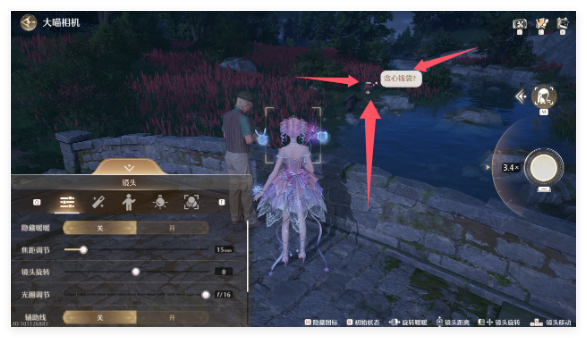 贪心钱袋位置的话就是在斯菲丹特对面,拿出相机拍照就可以了,我们可以在黄色选中框才是拍摄成功了;