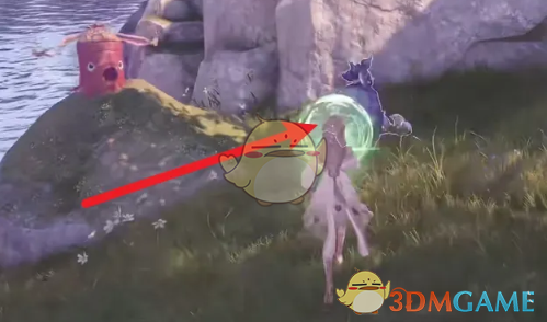 1、首先我们需要进入到游戏中,在小石田村的木桶小居锚点旁找到坚硬布袋。
