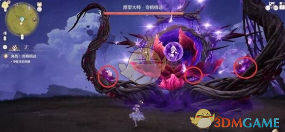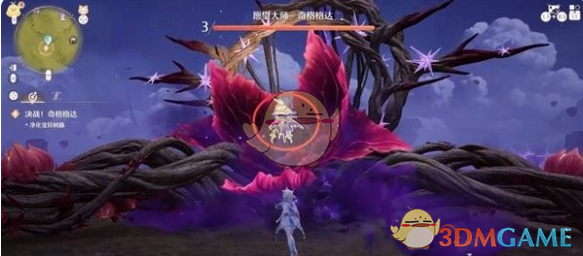 2、再点击切换为正常形态,长按攻击键,瞄准BOSS三只爪子上的紫花进行净化。