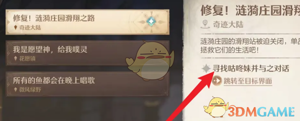 4、按照要求完成一系列的任务后就可以完成修复涟漪庄园滑翔之路任务。