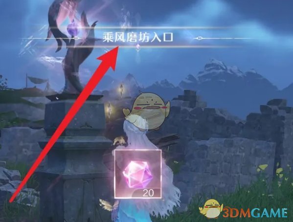 4、最后我们降落后,就可以来到乘风磨坊的入口处,靠近即可成功进入。
