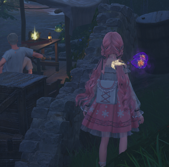 接下来,朝正西方向看,你会发现有三颗闪闪发光的露珠悬浮空中。利用漂浮攻击,就能轻松摘下它们。收集完露珠后,往正南方向去,那里有一辆推车,车斗里藏着一个宝箱,别忘记顺手打开。推车东南方向的地带,还能发现两颗散落的露珠。