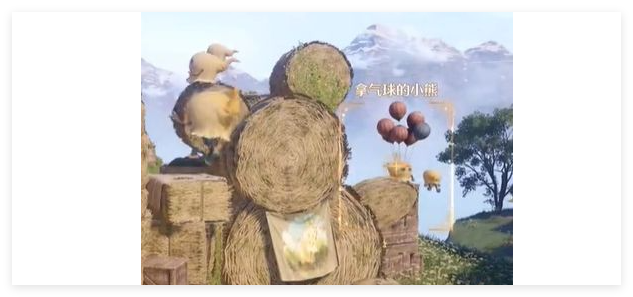 2、在这边的话是可以看到有一个小熊木板,需要我们把【小熊的爪子】和其后方的【气球】对起来,这里面的话就需要我们调整好特殊角度对应,看到等到出现【拿气球的小熊】后按下快门把这个照片拍好了就可以了。