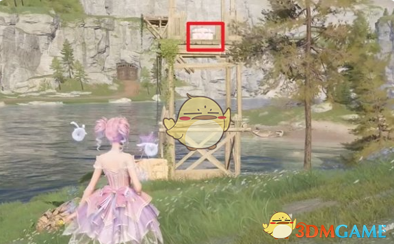 2、 到达后,湖中心的方向有一个瞭望架,上面有一个宝箱。