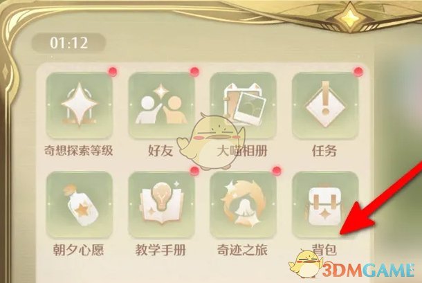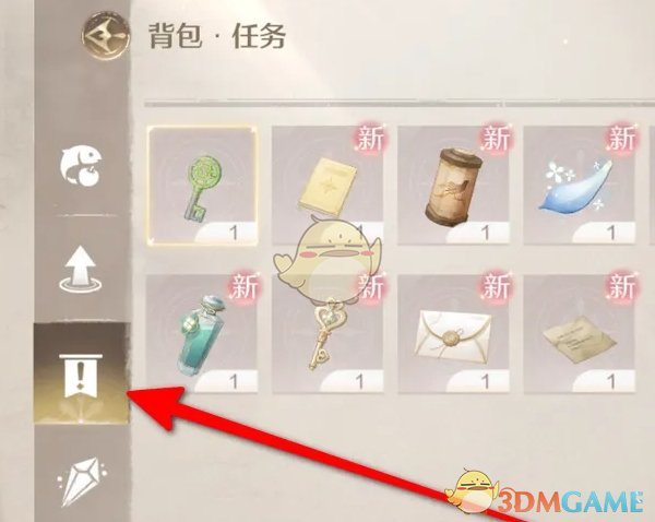 3、在背包中,点击左侧第三个感叹号即可查看任务的道具;