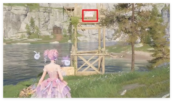 2、然后去湖中心的方向看到有瞭望架,上面发现宝箱。