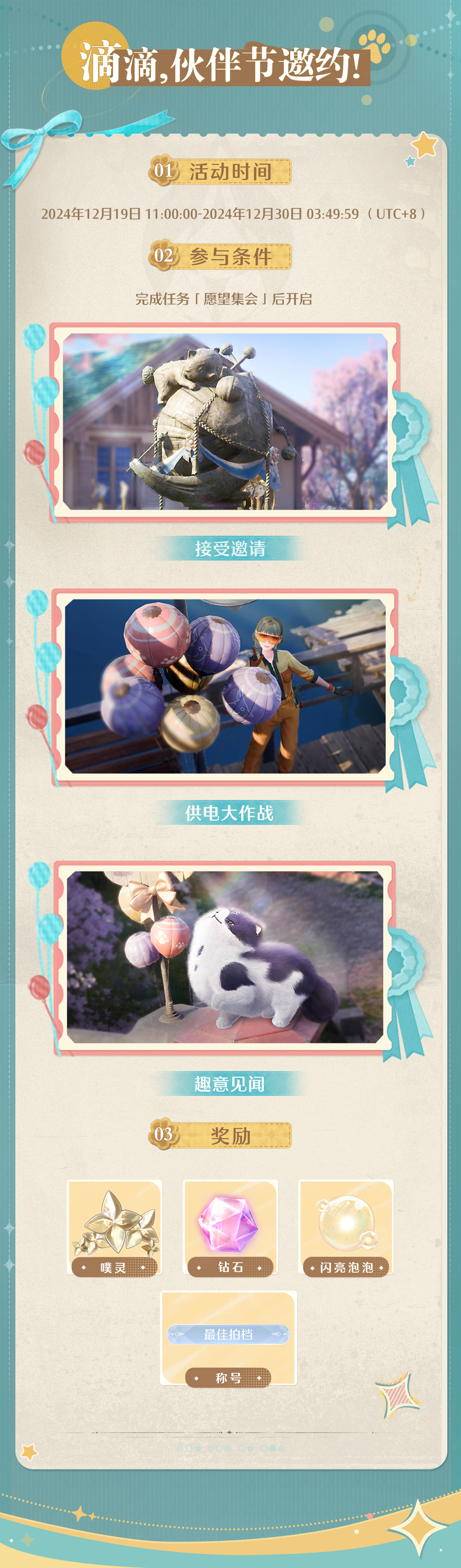 无限暖暖伙伴节怎么玩?无限暖暖公测1.0版本的开服新手任务已经结束了,在12.19日更新后,还有全新伙伴节可以游玩哦,下面为大家带来的具体内容,感兴趣的玩家们千万不要错过哦!