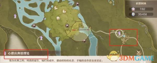 1、首先打开地图,选择祈愿森林的心愿庆典管理处前往;