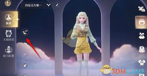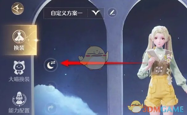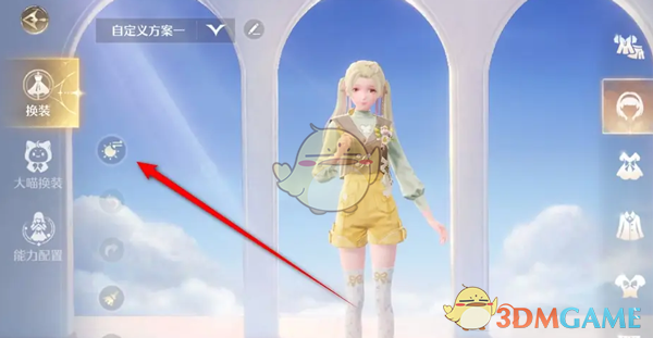 答:在试衣间内点击左侧的切换按钮,即可更换试衣间背景。