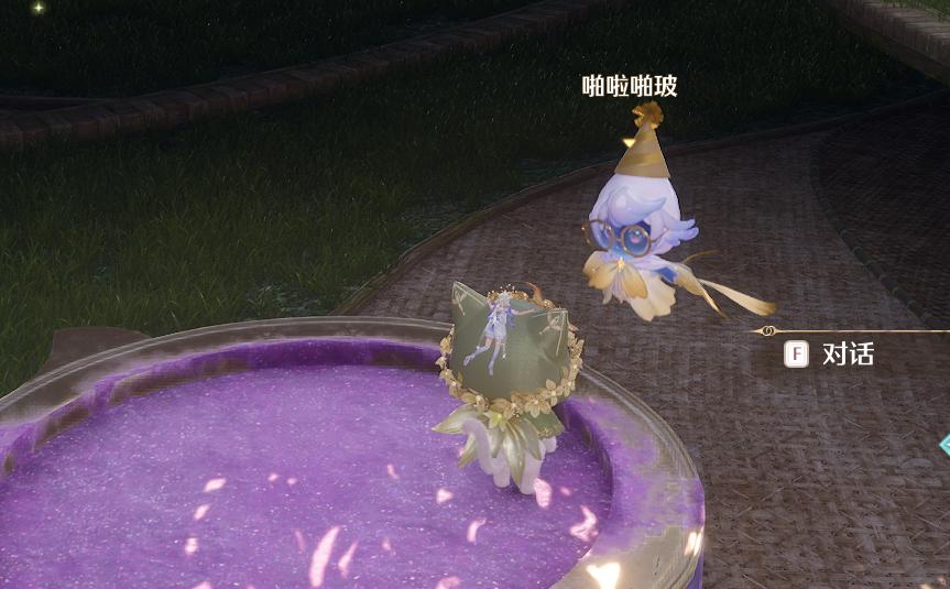 2、变小后,和小精灵啪啦啪玻对话,让我们踩一个爱心