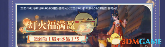 2、灯火福满盈:2025年2月7日至2025年2月14日,签到可领取启示水晶×5。