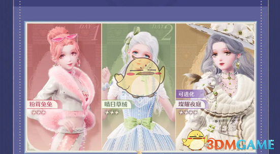 2、商城新增免费套装:粉茸兔兔、晴日草绒、璀璨夜庭(可进化)。