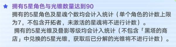 不计入开拓者、不计入黑塔商店兑换光锥、不计入满星魂溢出金数!除此之外获取的5星角色或光锥都算,如常驻、旅伴金灵或光锥碎忆兑换、部分活动赠送等等都算数。
