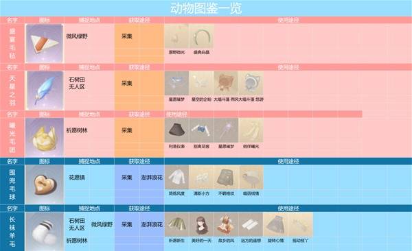 图文主要是针对无限暖暖中动物类资源的图鉴: