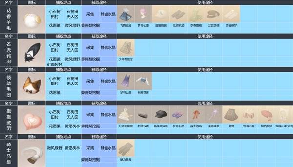 《无限暖暖》动物材料图鉴获取地点及使用途径分享