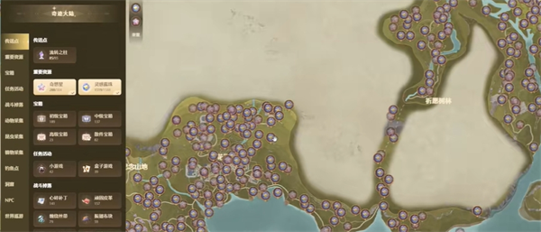 另外地图工具上还有各种宝箱游戏、采集物等等,除了房间内和洞窟的其他的都有点位