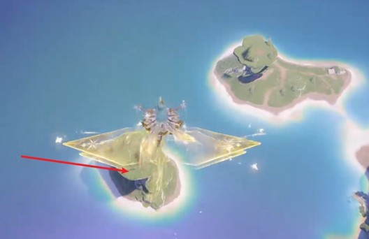 4、调查后,往箭头方向走,飞下去,去箭头处的小岛。