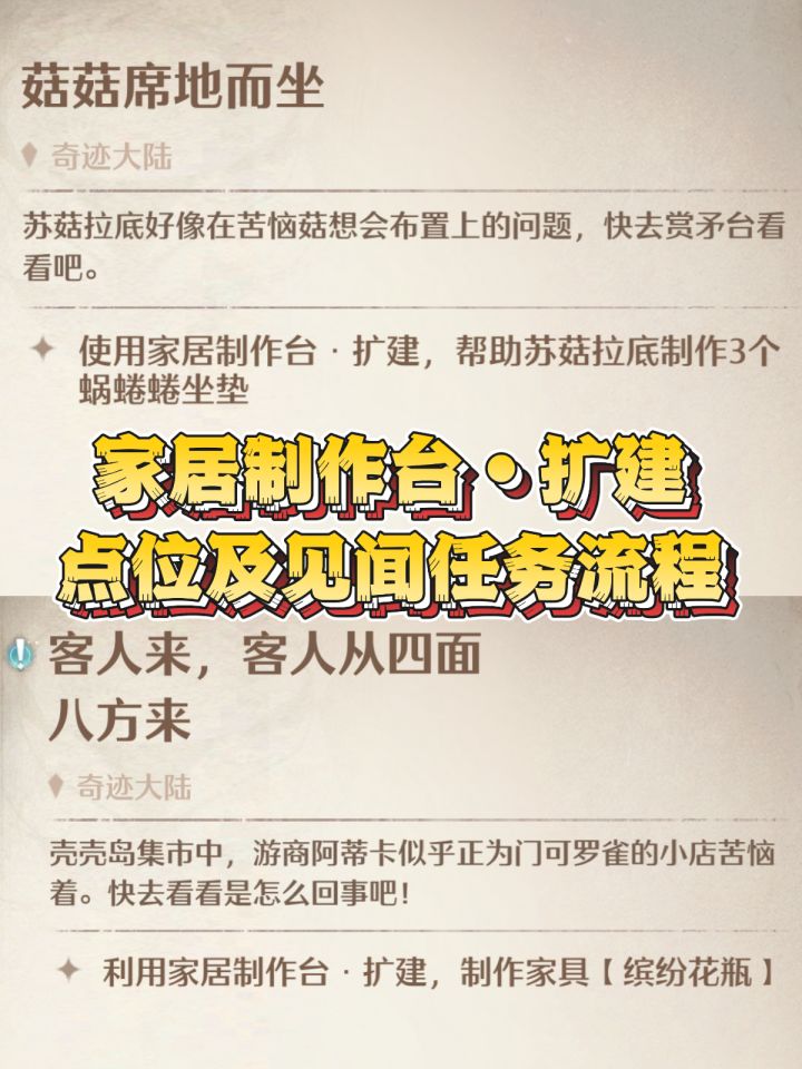 《无限暖暖》家居制作台•扩建点位及其见闻任务: