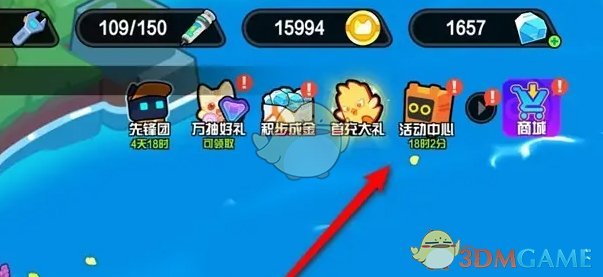 1、首先我们在游戏主页,点击右上角的活动中心前往详情页;