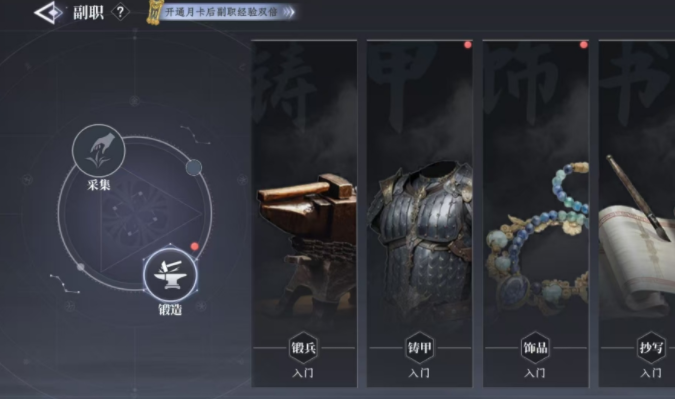 在游戏里探索场景以及战斗,是最经典的一个玩法,在后期玩家还会解锁采集系统,通过采集系统可以进行各种矿产药材的采集,同时还可以解锁狩猎功能,借助狩猎可以产出大量的肉类资源,这些肉类可以进行烹饪,吃掉这些菜品之后,玩家就能恢复体力,或者带回来一些其他的额外加成,想要狩猎,玩家先需要去挑战主线任务,达到特定的主线之后就可以解锁采集玩法,在这个玩法里会开启狩猎模式同时,还会有很多其他的模式,也可以把这个模式称为副职业,玩家可以选择一个自己喜欢的模式参与,可以狩猎,也可以去打造各种强力的装备。