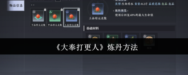 大奉打更人怎么炼丹?大奉打更人是一个还原小说的游戏,通过这个游戏玩家可以扮演成经典的角色,能以这个角色的视角,重新经历小说里的各种经典事件,这期要分享的是大奉打更人炼丹方法,炼丹是对于玩家来说非常重要的,借助这些丹药可以有更优秀的表现,想要炼丹是有条件的,下面就会把相应的设定,全都跟大家分享出来,想要炼丹的玩家,可以详细查看下面的内容,了解具体的方法和门槛要求。