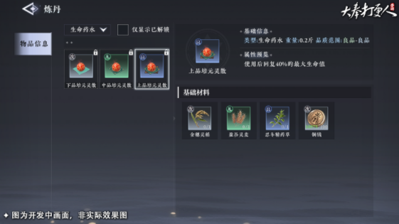 在初期玩家只能去游戏里进行探索战斗,无法进行炼丹,想要解锁炼丹这项功能,就需要先去完成主线任务的挑战,随着主线的推进可以解锁副职系统,这是游戏里比较独特的生产系统设定,在这种设定下,除了在这个大世界探索之外,玩家还可以成为制造者,能自行制造各种装备,同时炼制丹药,想要顺利炼丹,玩家就需要完成税银案,接着就可以在全新解锁的赋值生产系统里,选择丹药的炼制,每个丹药都有不同的能力,并且这些丹药除了自己使用之外,还可以选择在游戏里售卖。